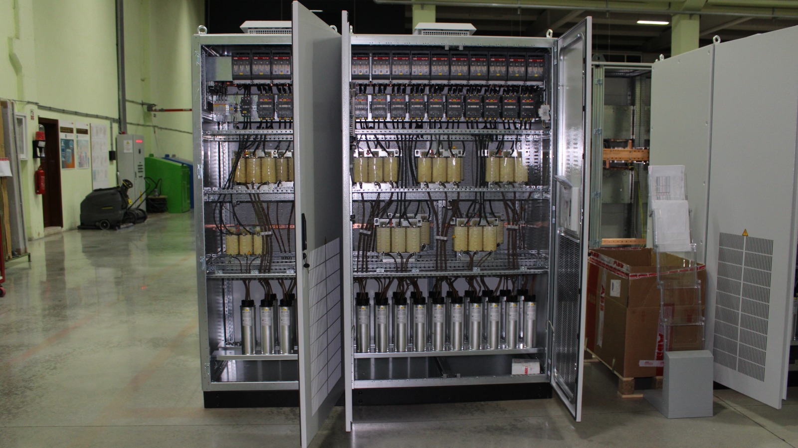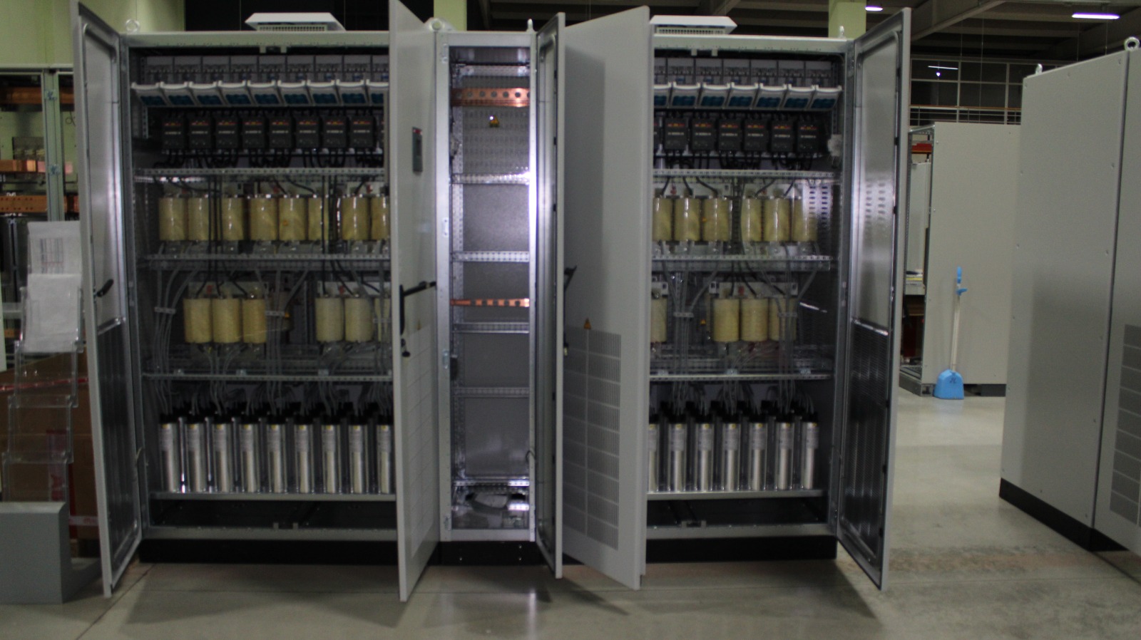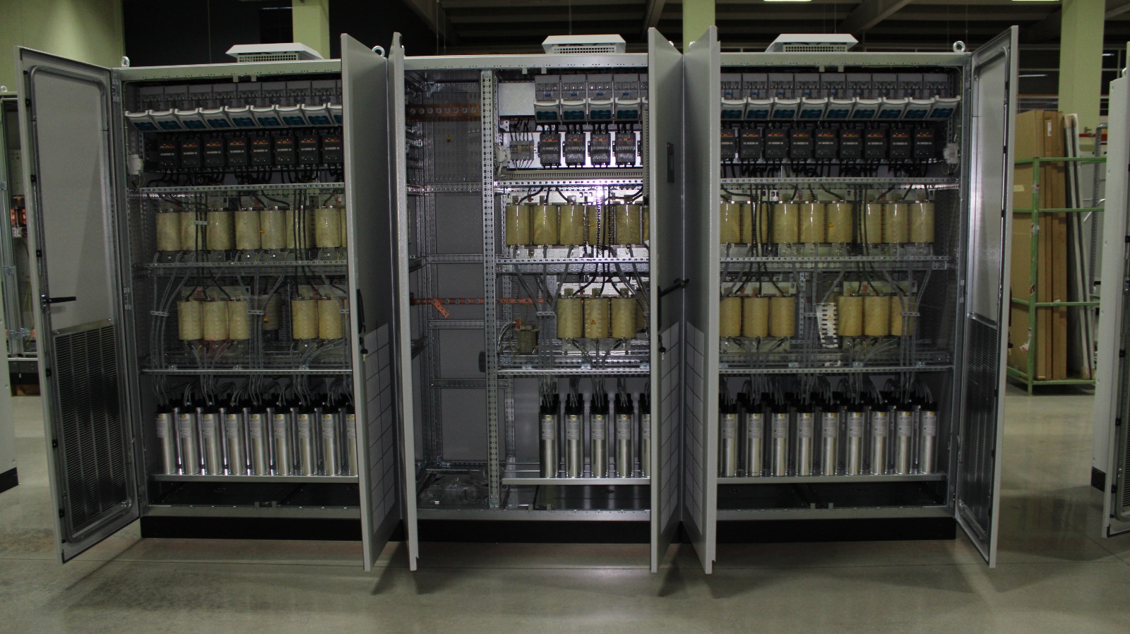 Sistemdeki endüktif yük kaynaklı kullanılamayan enerjinin aktif ve/veya pasif olmak üzere kapasitif sistemlerle desteklenerek cosQ katsayısının istenen seviyede tutulmasını sağlayan panolardır.Kompanzasyon panolarının temel amacı güç faktörünü düzeltmektir. Bu sistemlerde; kondansatör, reaktör ve şönt gibi yüksek ısı üreten elemanlardan yararlanılır.
